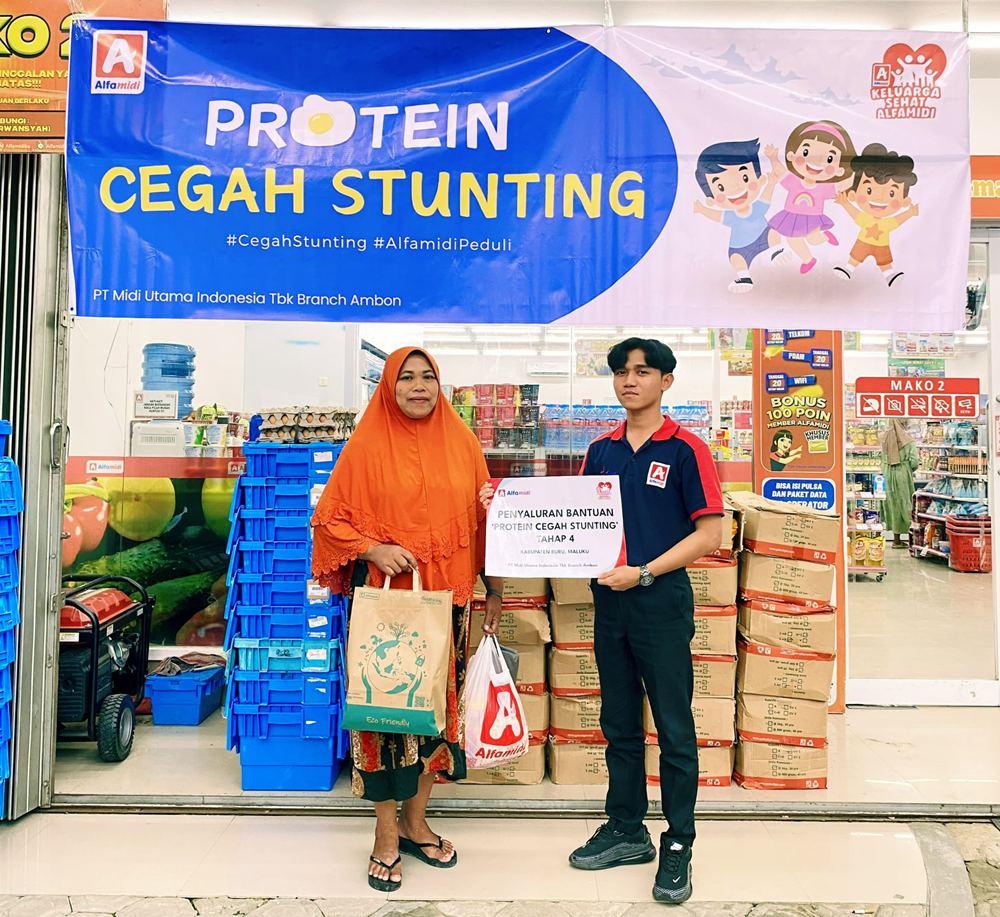 Dalam Rangka mendukung program pemerintah untuk menurunkan angka stunting, Alfamidi kembali mendistribusikan bantuan stunting tahap keempat kepada masyarakat di Desa Waenetat, Pulau Buru pada Jumat (28/2/2025). Bantuan berupa 1.500 butir telur kepada 25 anak yang terindikasi stunting melalui program Protein Cegah Stunting ini fokus untuk perbaikan gizi anak dan akan
