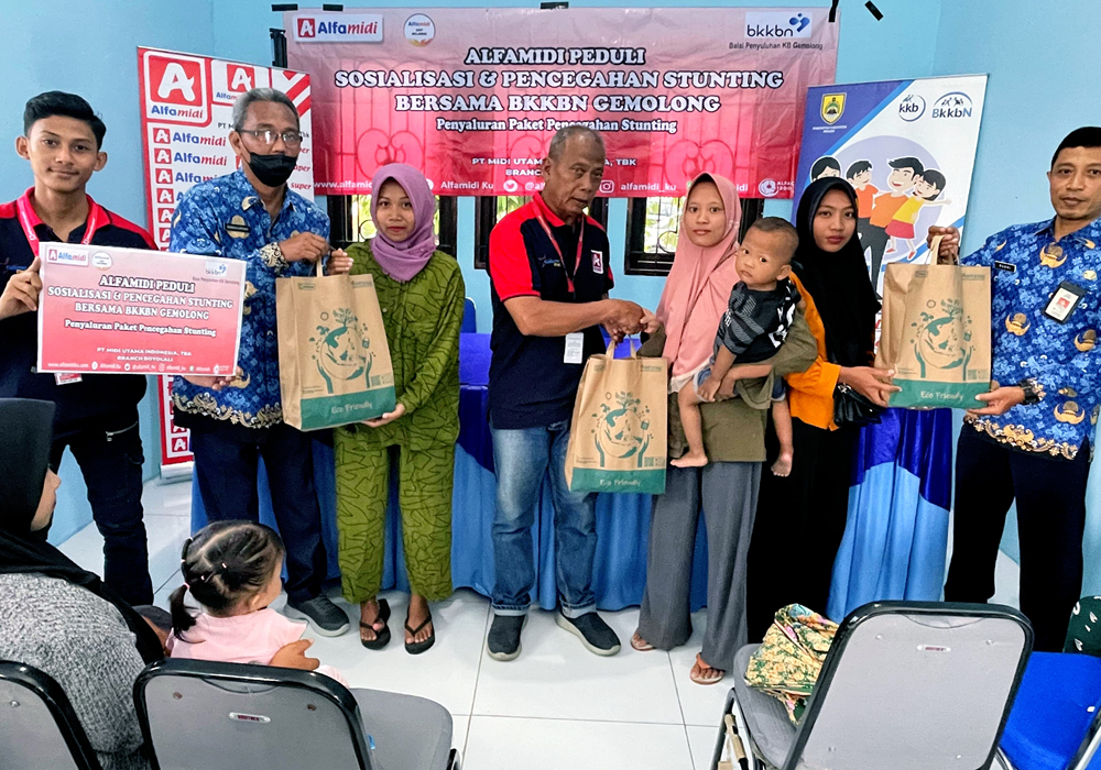 PT Midi Utama Indonesia Tbk (Alfamidi) cabang Boyolali kembali melaksanakan sosialisasi dan penyaluran bantuan bagi anak-anak yang terindikasi stunting di Brangkal, Gemolong, Kabupaten Sragen, pada Jumat (29/11/2024). Kegiatan ini merupakan bagian dari komitmen berkelanjutan Alfamidi dalam menurunkan angka stunting di Indonesia.