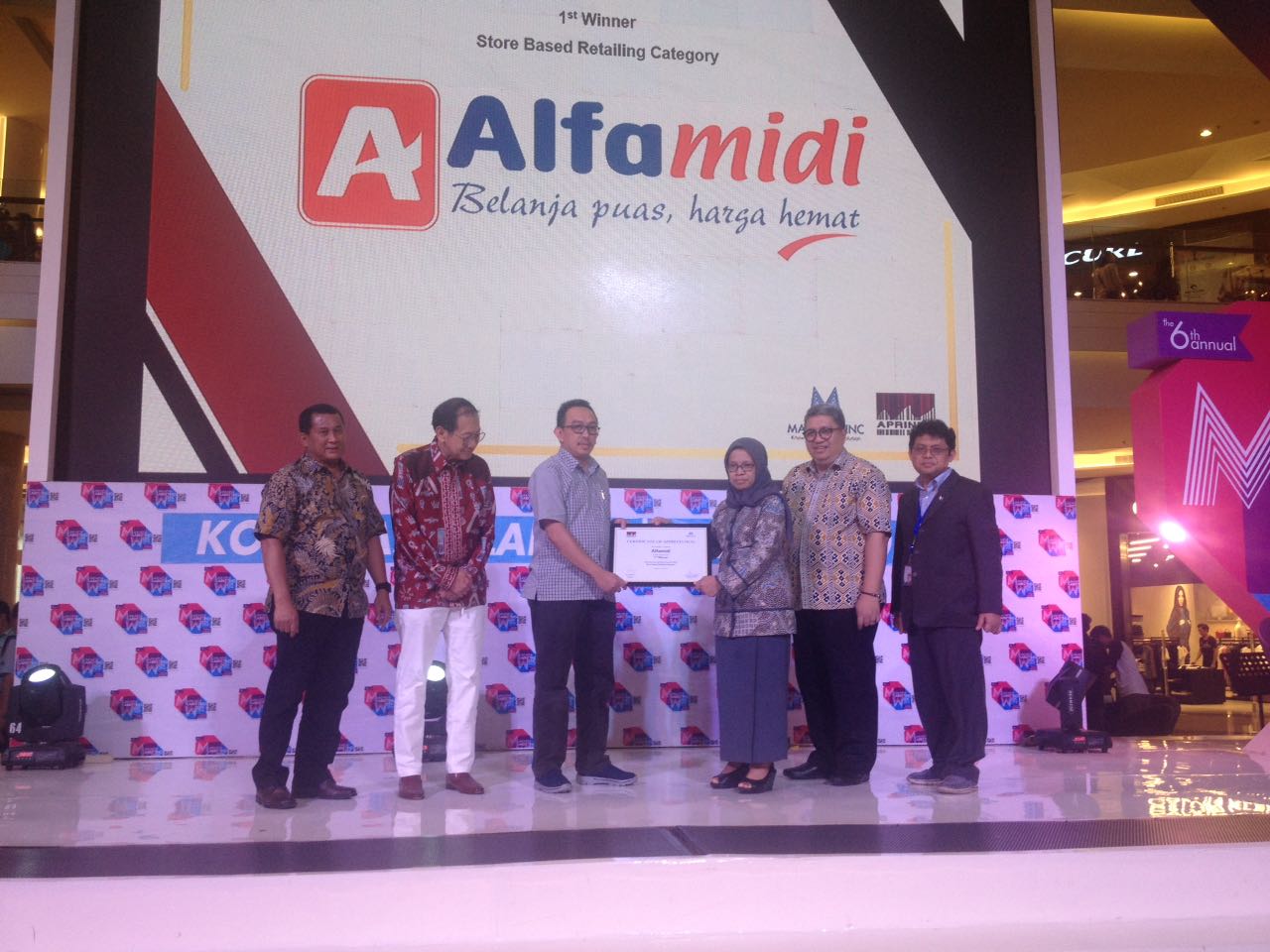Penghargaan tersebut diserahkan langsung oleh Tjahya Widayanti, Dirjen Perdagangan Dalam Negeri Kementerian Perdagangan kepada Ivan Hermawan, Corporate Communication General Manager PT Sumber Alfaria Trijaya Tbk sebagai pemilik saham mayoritas Alfamidi dalam