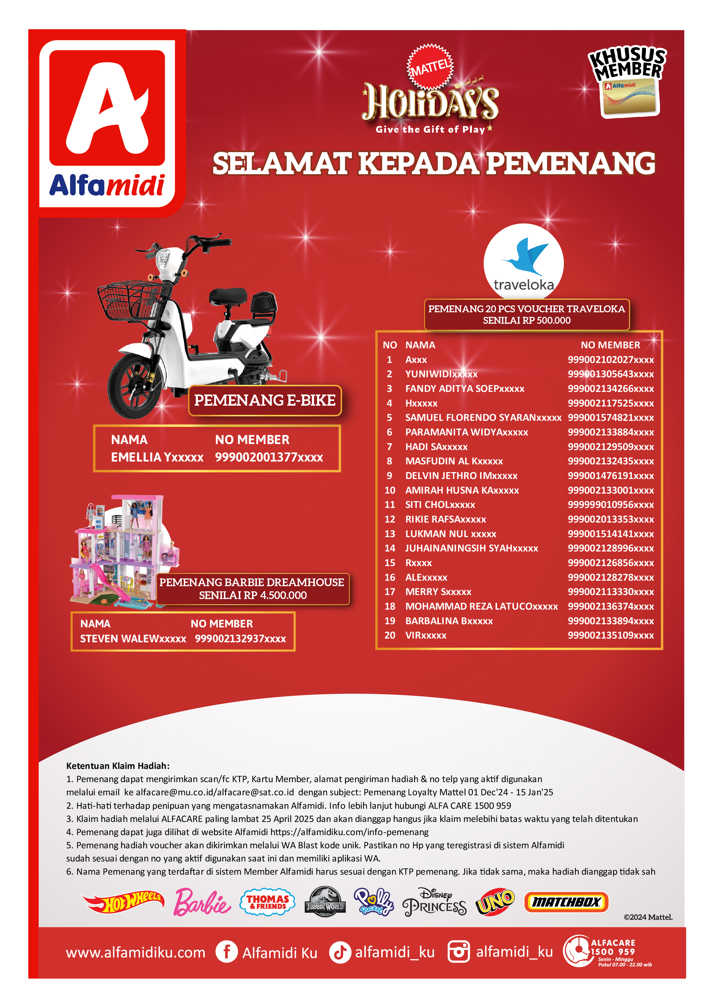 Pemenang Loyalty Member Afamidi X Mattel 2025